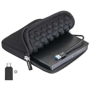 ROOFULL External CD DVD +/-RW Drive USB 3.0 Type-C DVD CD ROM Optical Disc Drive Reader Writer Burner Portable DVD Player with Protective Carrying Case for Laptop PC Windows 11/10 Mac MacBook Linux