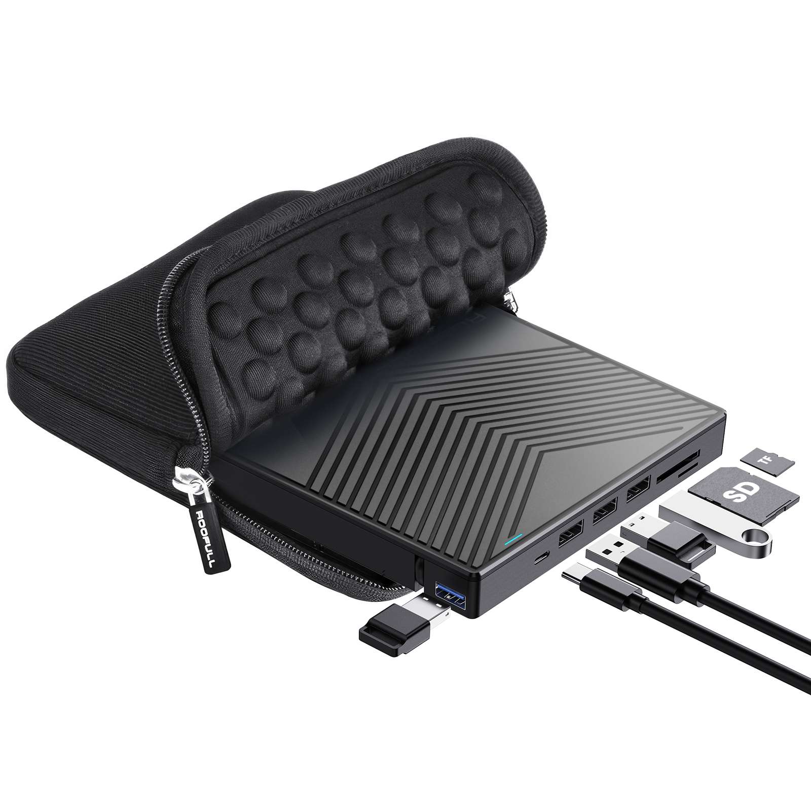 ROOFULL External CD DVD Drive, CD Burner DVD Player USB 3.0 with 4 USB Port Hub and 2 SD/TF Card Reader, USB-C CD/DVD-ROM +/-RW Disk Drive Adapter Writer for Laptop PC Mac Windows 11/10/8/7 Linux OS