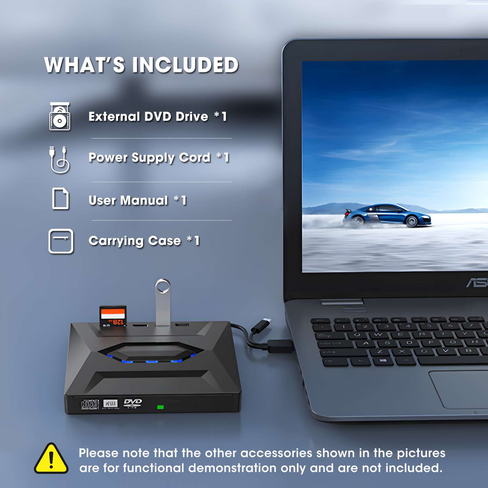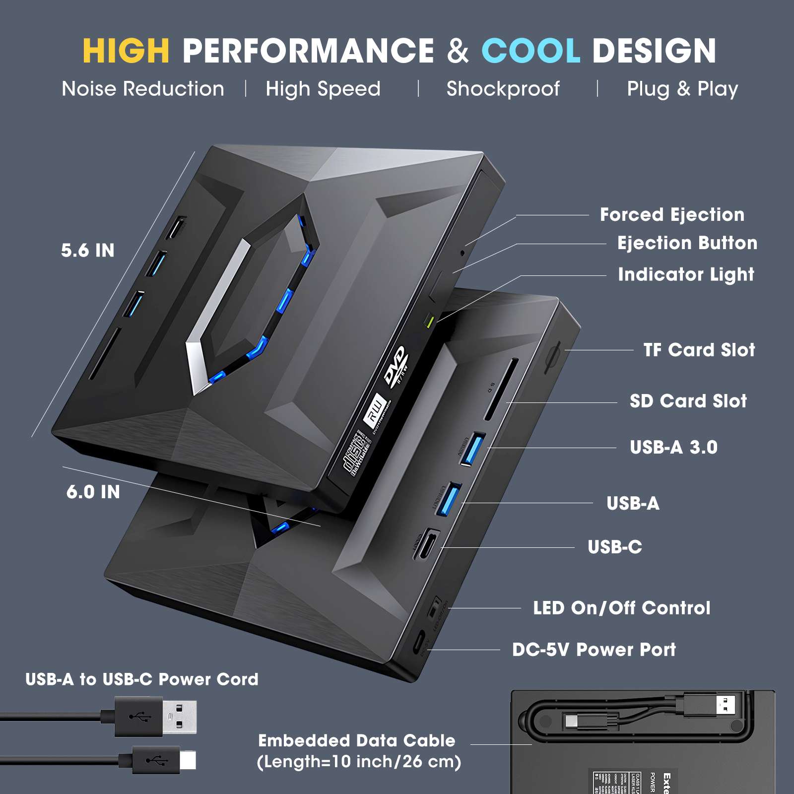 - Cool Design with Blue LED Accent Lights (can be turned off)